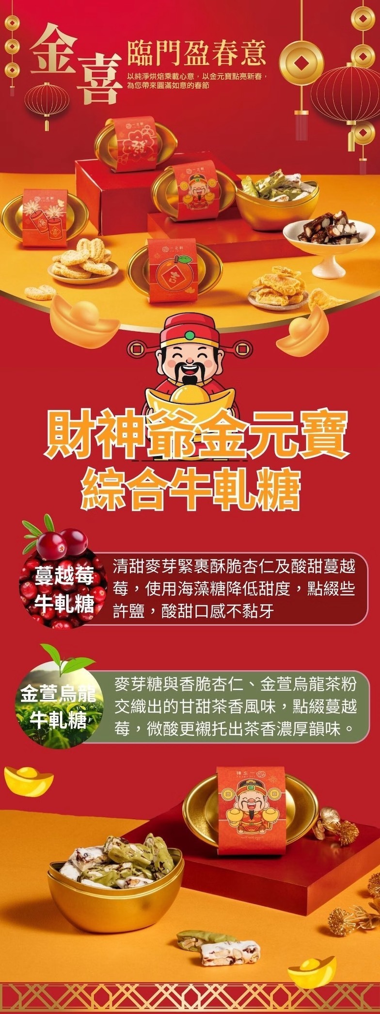 金元寶【財神爺】綜合牛軋糖 (蔓越莓/金萱烏龍)